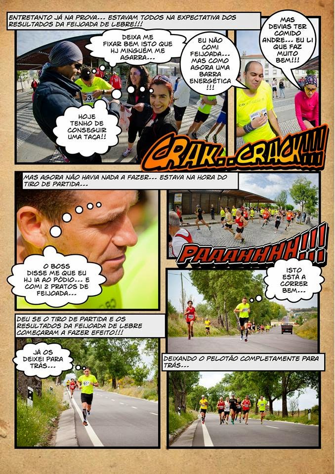 Igualmente no nosso grupo de Running ia o Miguel, amigo de longa data, "batido" nestas coisas das artes multimédia. Da sinergia entre os dois surgiram uma série de pranchetas de banda desenhada que nos tem animado no Grupo CB Running do Facebook. Com a permissão deles, publico aqui a prancheta que me dedicaram e que só por si merece o vosso momento de leitura deste blog.
